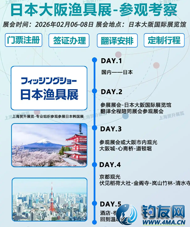 2026日本大阪國際漁具展覽會 Fishing Show Osaka ●展會時間:2026年02月06-08日 ●展會地點:日本大阪國際會展中心 ●主辦單位:Osaka Fishing Tackle Cooperative Association ●展會周期:一年一屆 ●組展單位:上海貿升展覽服務有限公司—日本展專業服務商 日韓展-上海貿升展覽 138---1710----3638(V) 立即預約 展品范圍: 釣具:釣魚竿及配件、魚鉤、魚叉、抄網、曳網、浮漂及附件、繞線輪、防水靴、釣具箱、漁餌、探測器、魚繩及線索、釣魚服裝、刀具、釣魚燈、釣魚眼鏡等 其他:清潔用具、爐具、帳篷、座椅、車輛、導航系統、救生用品、照明用具、紫/紅外線設備,禮品、紀念品類、船、快艇、氣墊船、船艇及相關配件、防水用具等 |