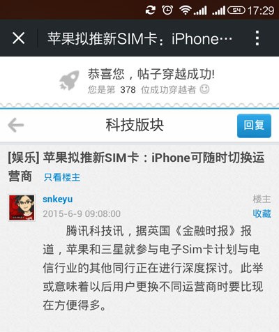 手機穿越看帖分享朋友圈就是這么簡單